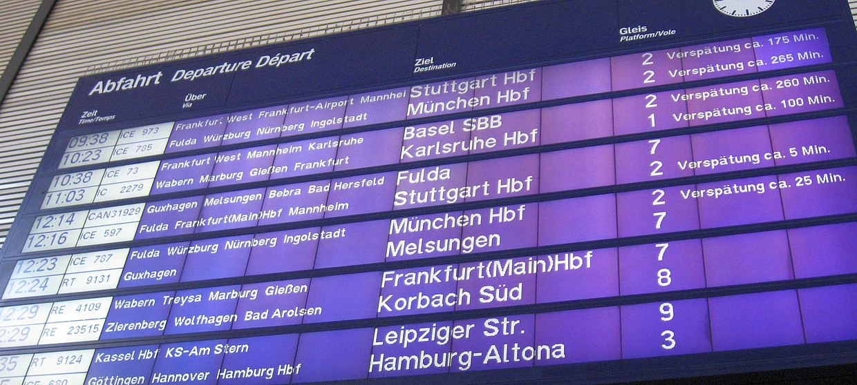 Glücklicherweise hängen überall große elektronische Displays. Weithin sichtbar benennen sie Abfahrtszeiten und Gleisnummern, bringen Ordnung ins Getümmel und vermitteln auf einen Blick wichtige Informationen.